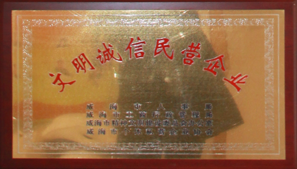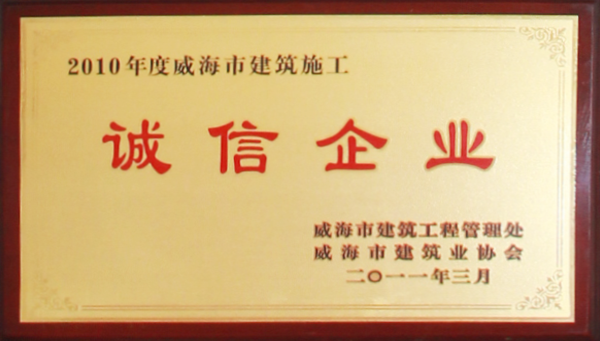 公司連續(xù)八年榮獲威海市“誠信開發(fā)企業(yè)”、“建筑施工誠信企業(yè)”,連續(xù)九年被評為威海市級“守合同重信用企業(yè)”,多次被評為威海市“市級文明單位”、“質(zhì)量管理先進企業(yè)”、 “安全管理先進企業(yè)”,乳山市“優(yōu)秀企業(yè)”、“先進民營企業(yè)”、“納稅明星企業(yè)”,在社會上逐步樹立了誠信、穩(wěn)健的企業(yè)形象。